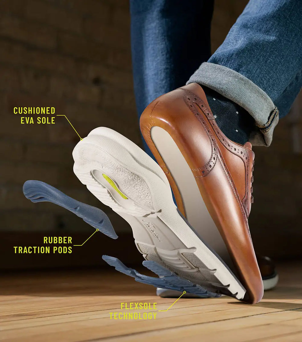 - Durable and cushioned EVA outsole with rubber traction pods and Flexsole Technology for out-of-the-box comfort