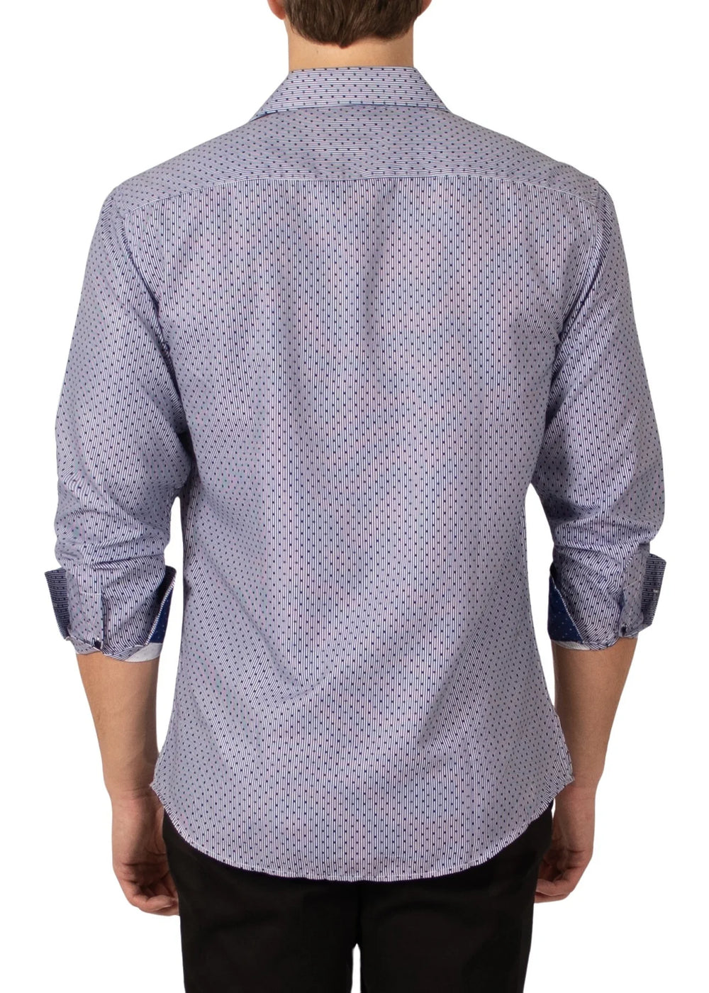Introducing our BC Collection Fancy Print Long Sleeve Dress Shirt, crafted with a tailored waist for a modern fit. Experience luxury with a high-quality collar and contrast trim inner collar and front placket, finished with our signature BC Collection monogram buttons. Elevate your wardrobe with our exclusive design.
