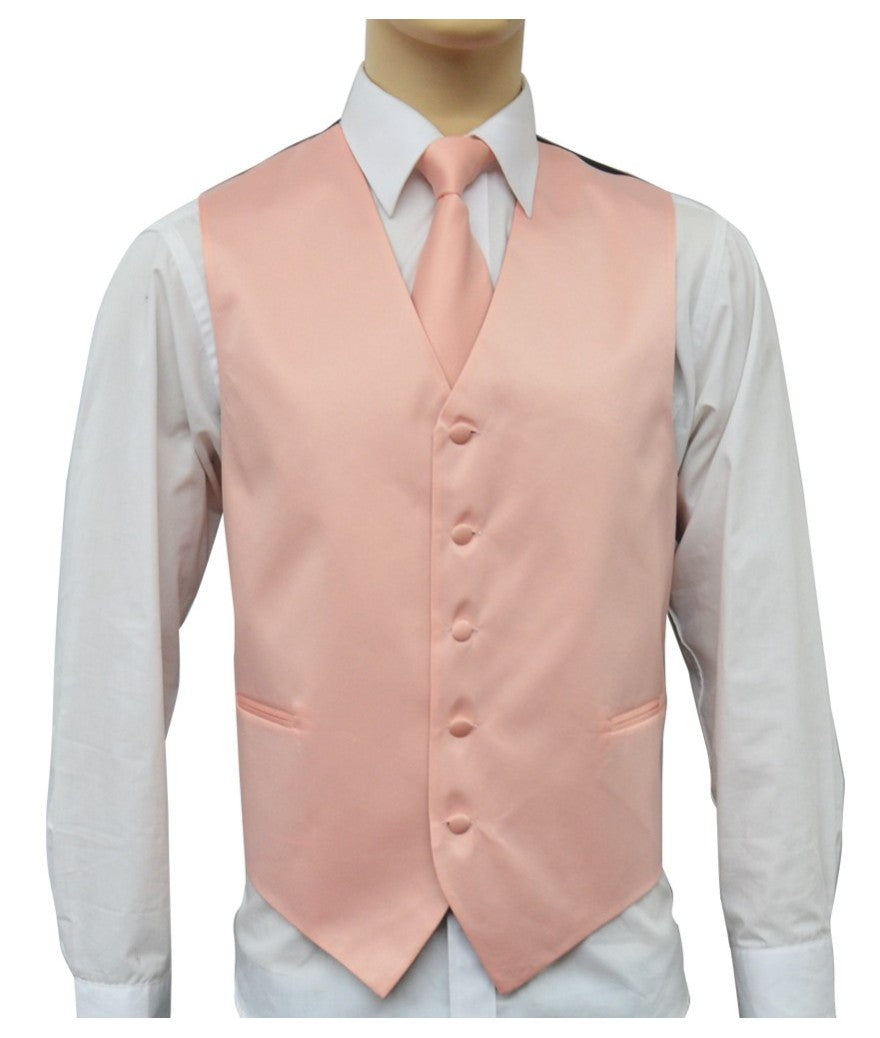 Brand Q. Men's Satin Peach Color Tuxedo Vest and Tie