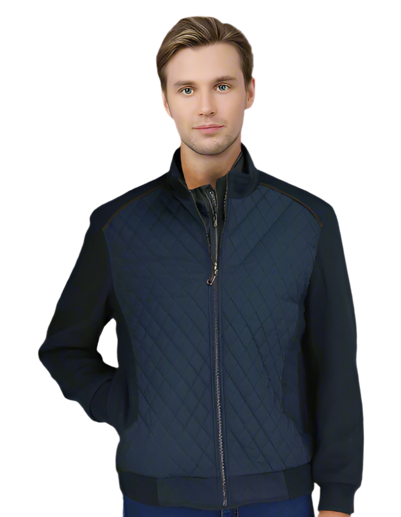 Quilted Front Zip Short Jacket by Enzo - Navy