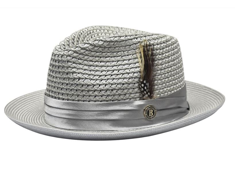 Bruno Capello Straw Braided Fedora Hat-Silver