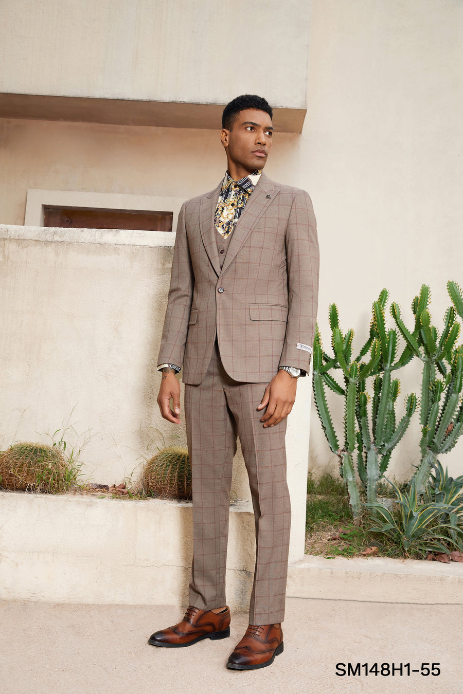 Light Brown Windowpane 3 PC Stacy Adams Suit