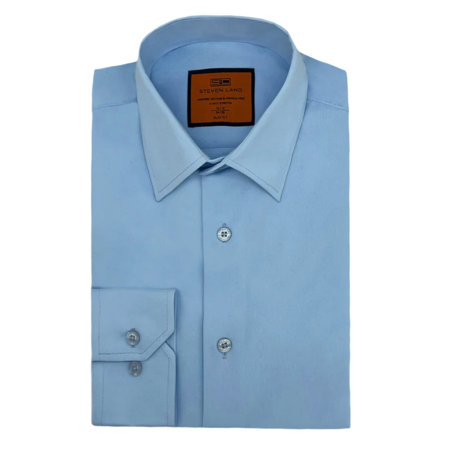 Steven Land 4 Way Stretch Travel Dress Shirt | Barrel Cuff | Point Collar | Light Blue
