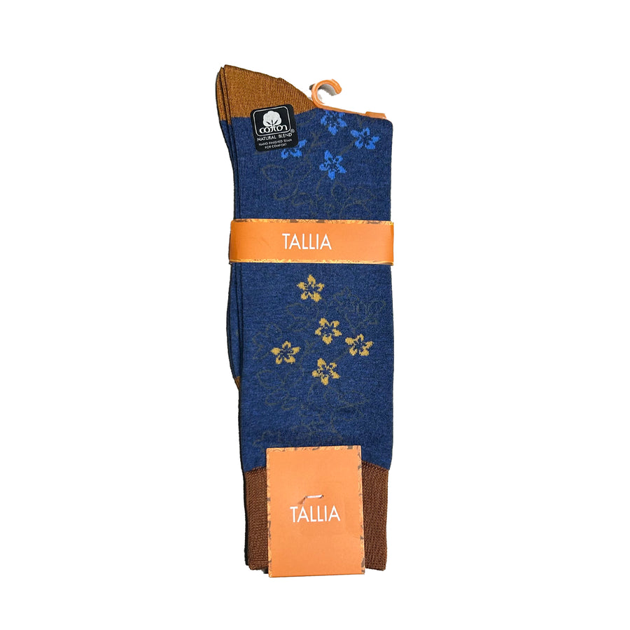 Tallia Mens Floral Design Socks - Blue/Gold
