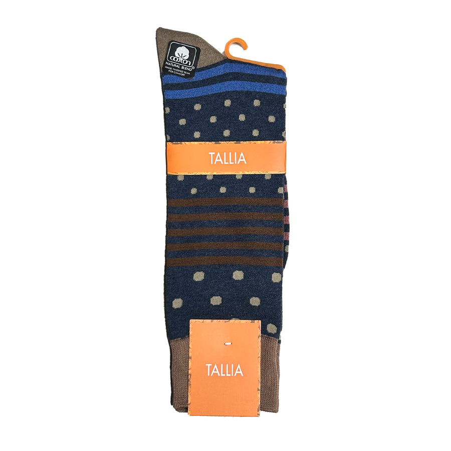 Tallia Mens Stripe Polka Dot Design Socks - Taupe/Blue