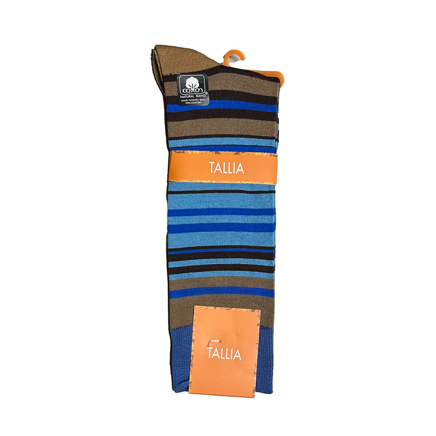 Tallia Mens Stripe Design Socks - Taupe/Blue
