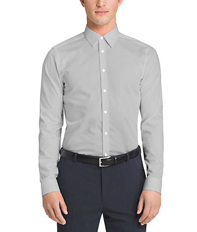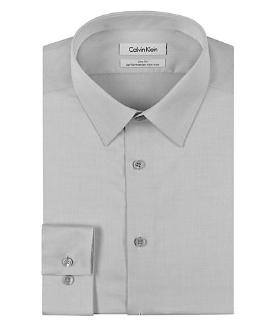 Calvin Klein Men`s S. Fit Non-Iron Herringbone Point Collar Dress Shirt-33K2479-Silver