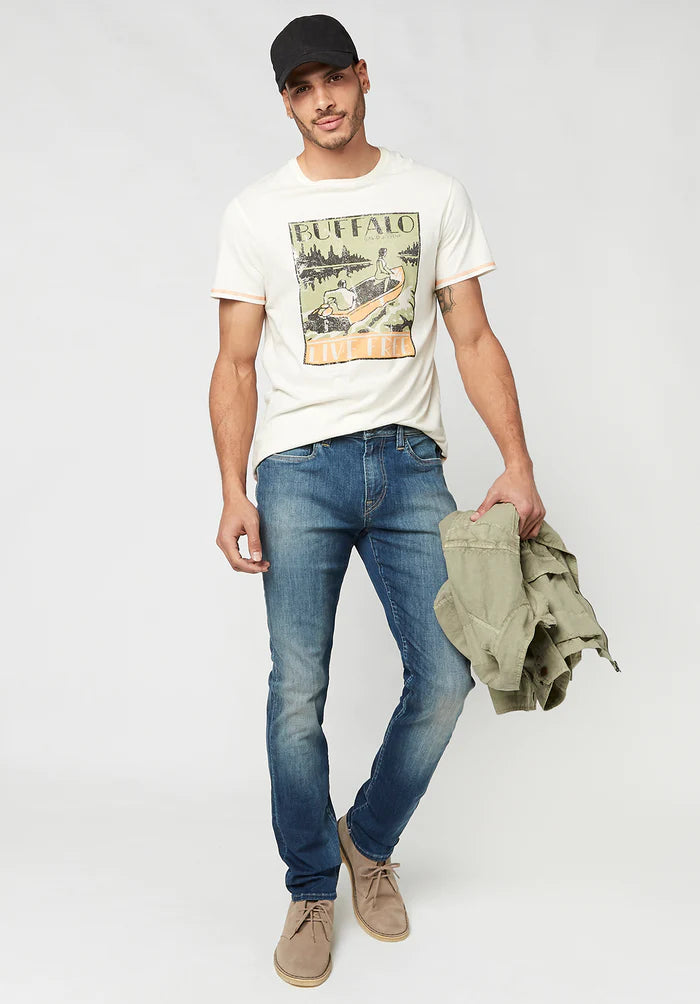 With a crinkled and contrasted effect throughout, this regular-waist pair of Slim Ash evokes the classic broken-in jeans, with a bit of stretch for added ease of wear. Though subtle in their design, the fabric itself is packed with features. They are made of our Future Fiber for thermoregulation, moisture wicking, and breathability. A deceptively simple pair of five-pocket jeans, they display just a few of the advances in the textile industry that we here at Buffalo are proud to support!
