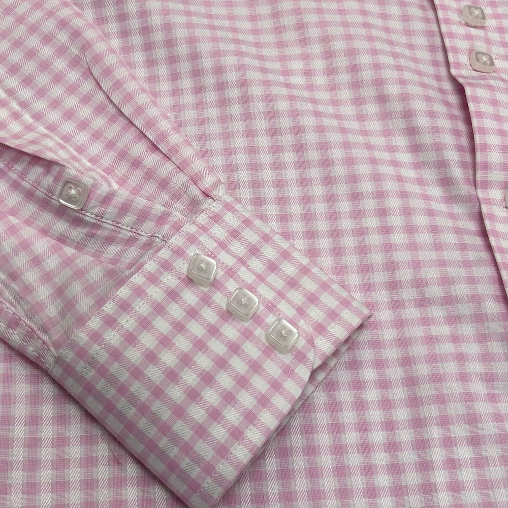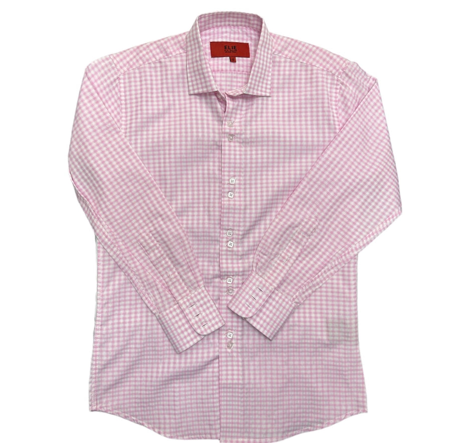 Elevate your little boy's wardrobe with this stylish Elie dress shirt in a classic pink check pattern. Designed with a slim fit and button-down collar, this shirt is perfect for formal occasions or dressing up any casual look. Made from a durable polyester blend fabric, it is comfortable and machine washable for easy care. This dress shirt features a button closure and is sized for boys with a size 12. Pair this shirt with khakis or dress pants for a polished look your little boy will love. It suits various occasions, including weddings, school functions, and family dinners. The blended fabric type and garment care make it an easy choice for busy parents. Get this high-quality dress shirt for your young gentleman today!