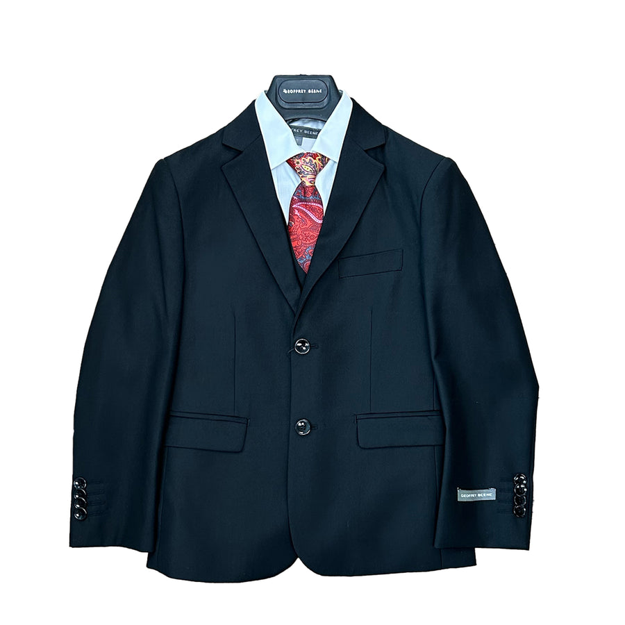 Transform your little one's style with the Geoffrey Beane Boys 5 Piece Vested Suit! This sleek black suit includes a shirt, tie, and vest, perfect for any formal occasion. Give your child a sophisticated and put-together look that will make them stand out in the crowd.