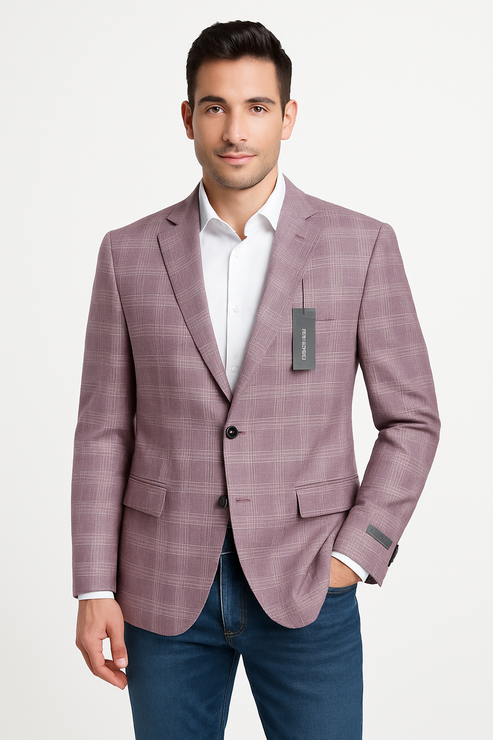 Turn heads with this sophisticated burgundy windowpane sport jacket. Featuring a sharp tailored cut and subtle windowpane pattern, it’s the perfect balance of classic charm and modern style. Dress it up with slacks for a polished evening vibe, or pair with dark denim for an effortlessly sharp weekend look.