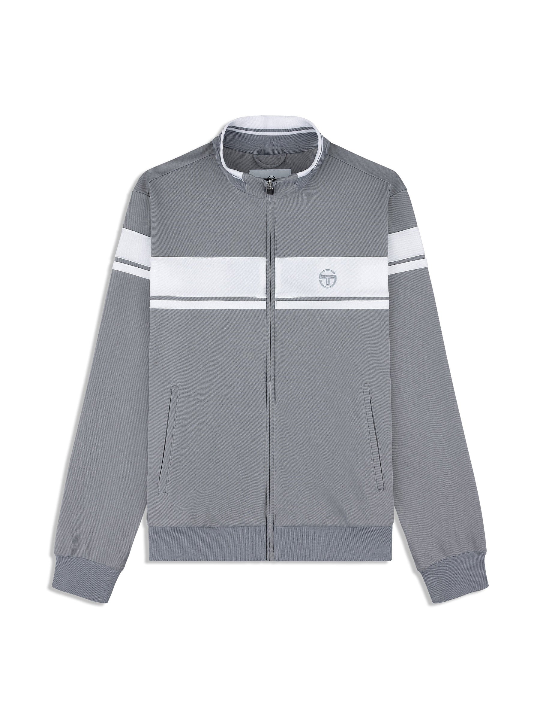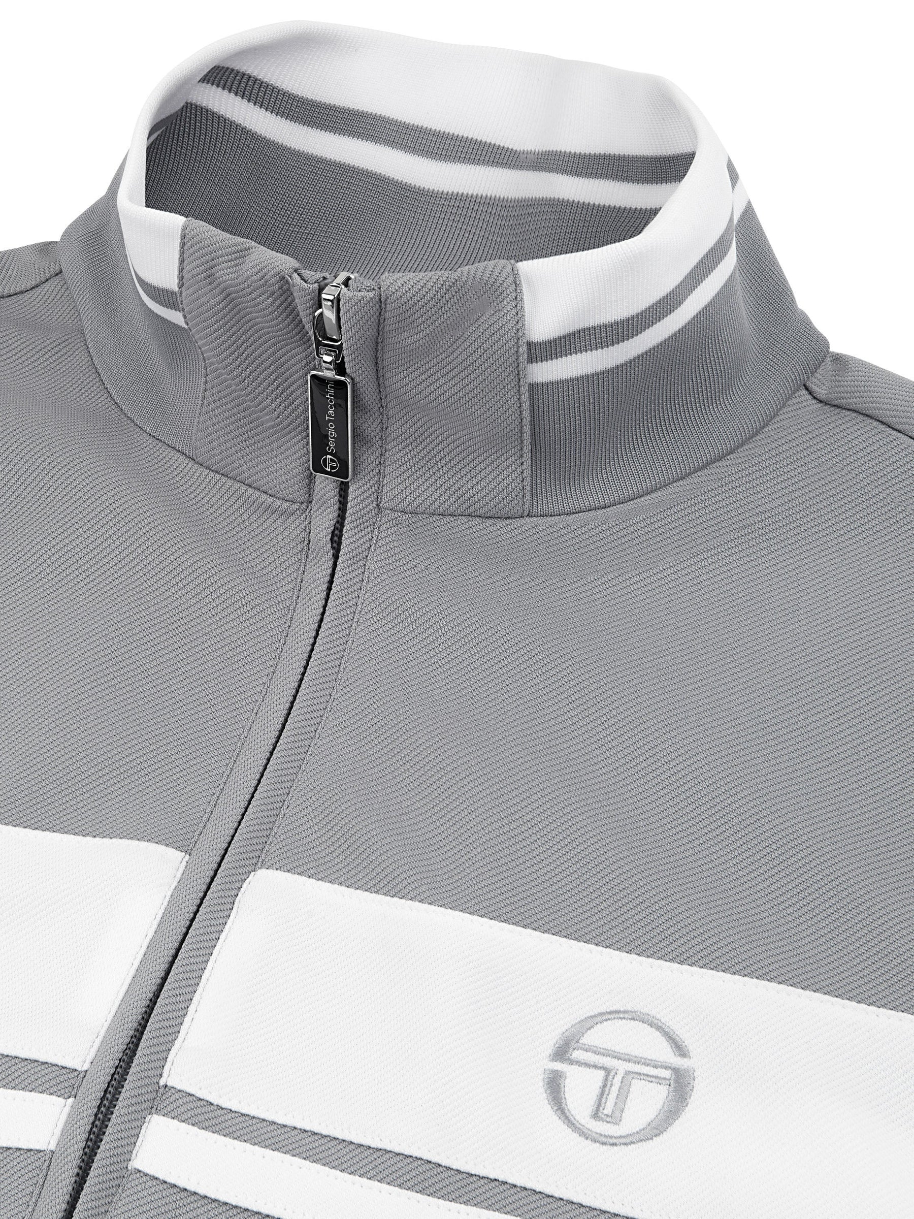 A true Tacchini classic, the Damarindo Track Jacket brings heritage sport style with a modern, elevated feel. Crafted in wrinkle-resistant twill, it features the signature double-stripe design across the chest, sleeves, and stand-up collar, along with the iconic ST monogram logo embroidered on the chest.