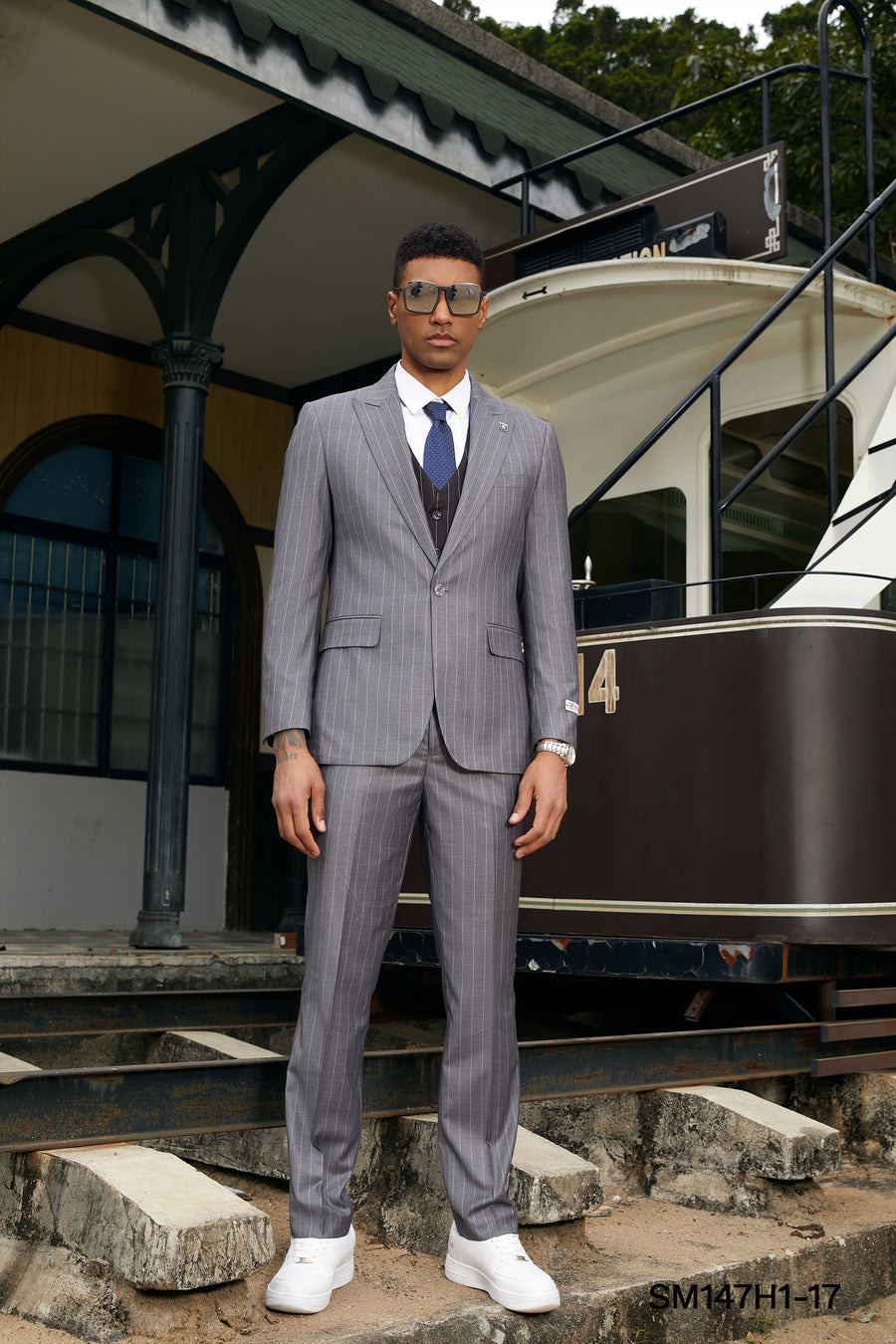Medium Grey Pinstripe 3 PC Stacy Adams Suit